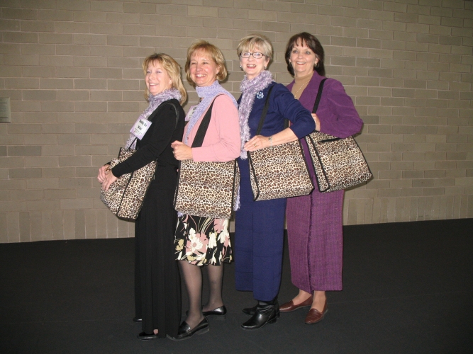 See the matching totes of our leaders? Betty Jo, Cindy, Terry, and Charlene. |