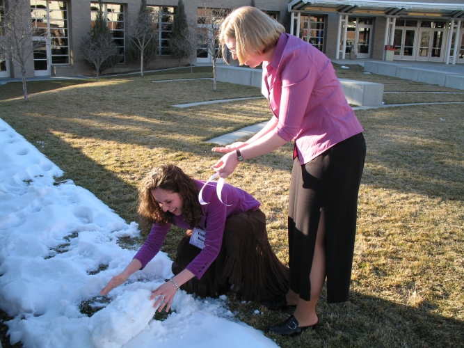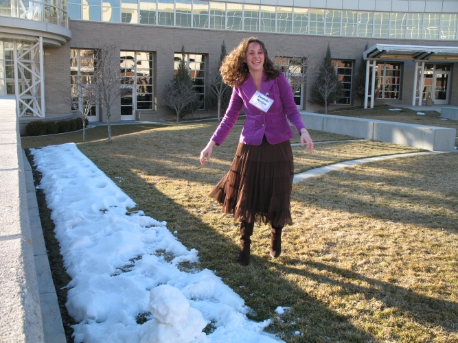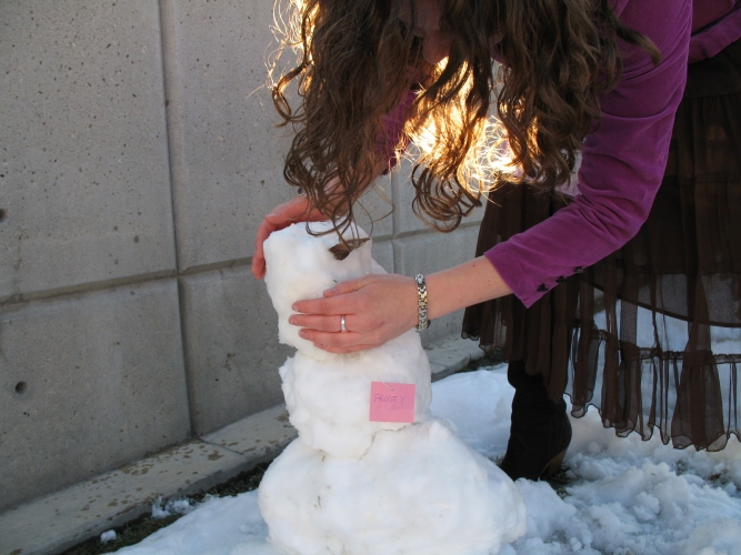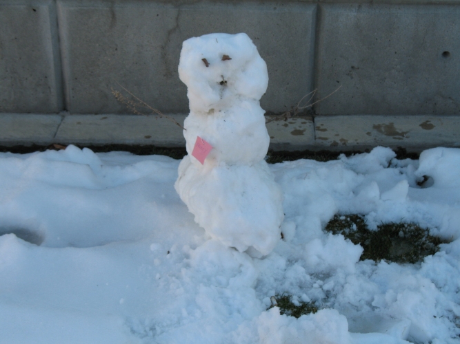 Danielle decided to make a snowman. I wasn't there with her to ask her why she did it, but she moved to Tulsa from Tyler, TX. Perhaps her experience with snow was limited. |