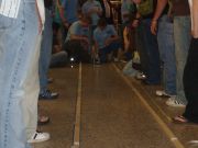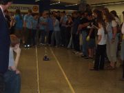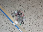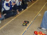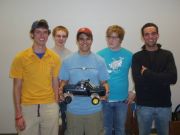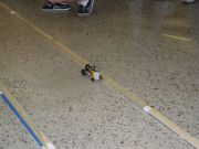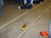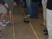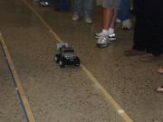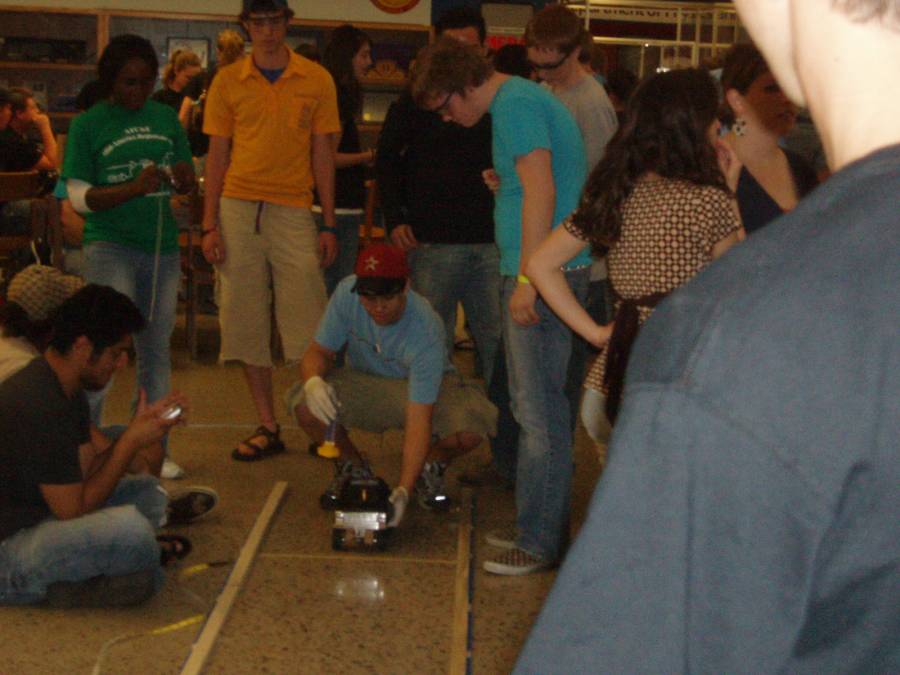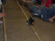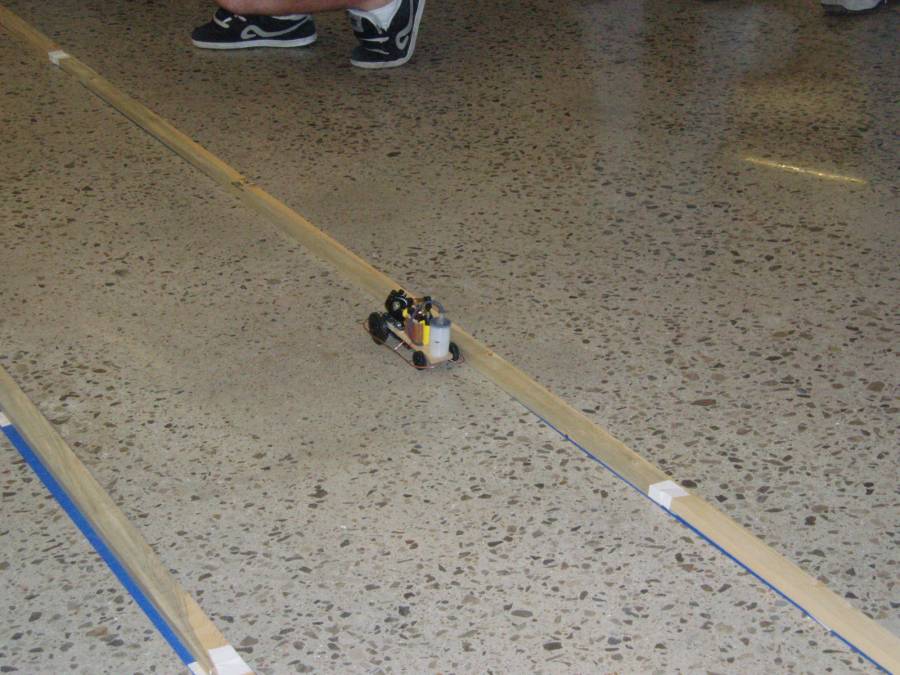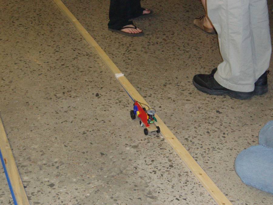 Here is one of the cars from another team. The car must stay within the track or get a penalty. The team members in the blue shirts are at the starting line. |