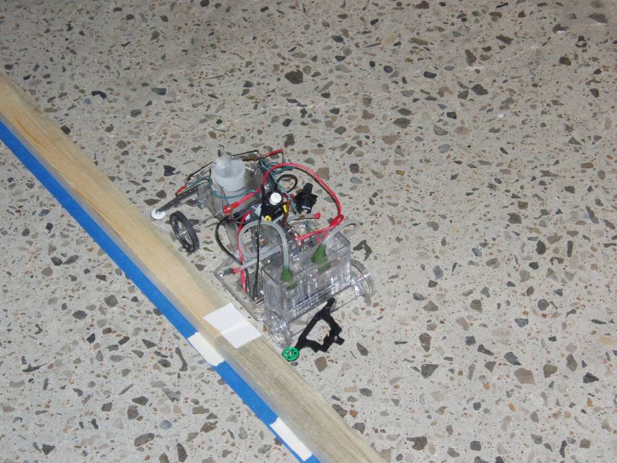 When the car stops, University of Tulsa chemical engineering students (who are the judges for the competition) measure the distance the car travelled, and subtract it from the desired distance. |