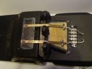The cars are models that start and stop based on a chemical reaction. Joey's reaction was the dissolution of magnesium ribbon in hydrochloric acid. These are the electrodes, and you can see the small acid tank on the top of the truck. |