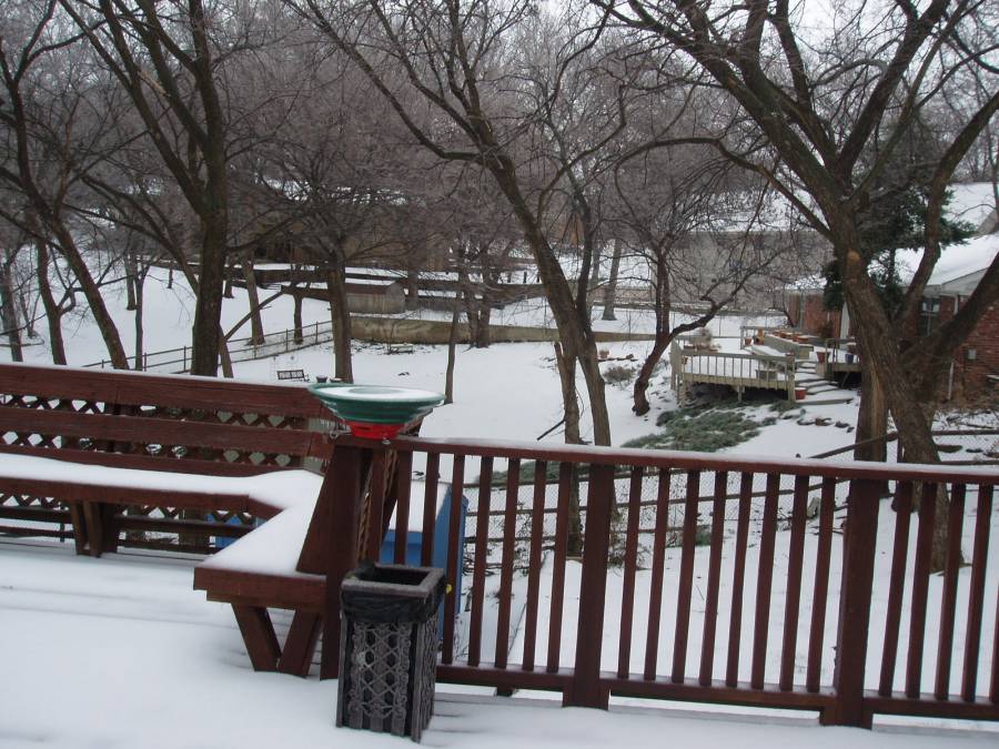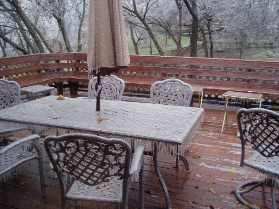 Later in the year in December, we had of one of the worst ice storms in Oklahoma history. This is what the table on our deck looked like in the midst of the storm. |
