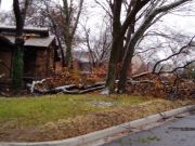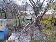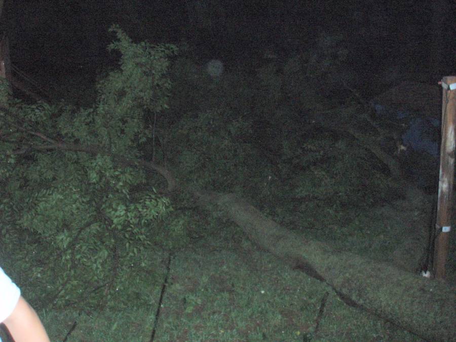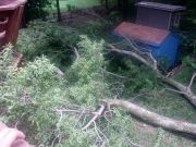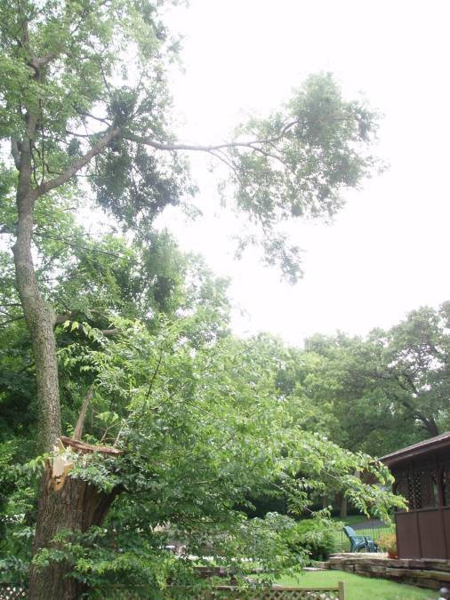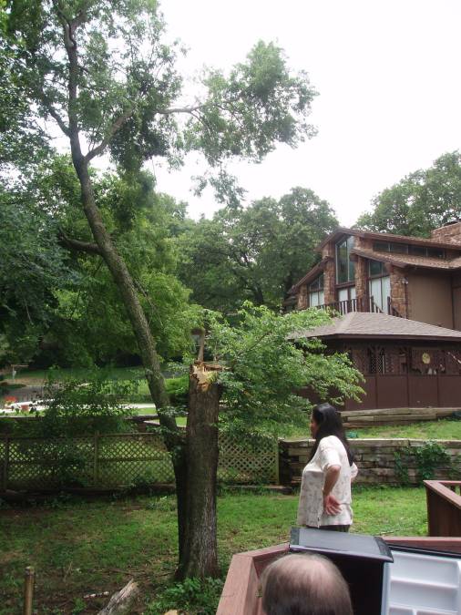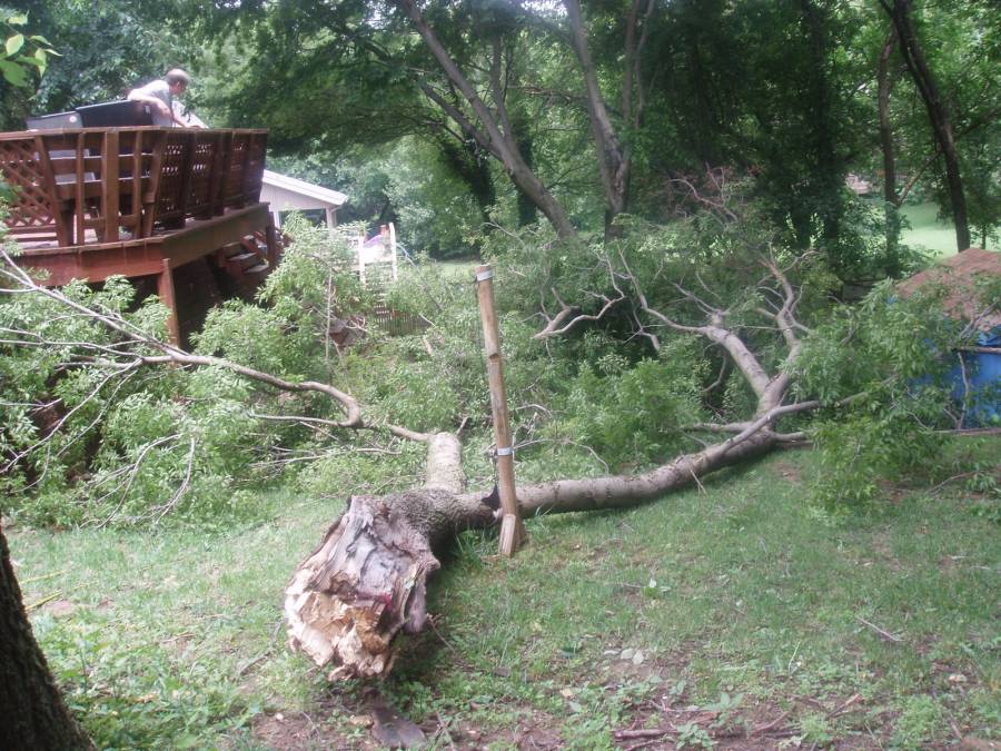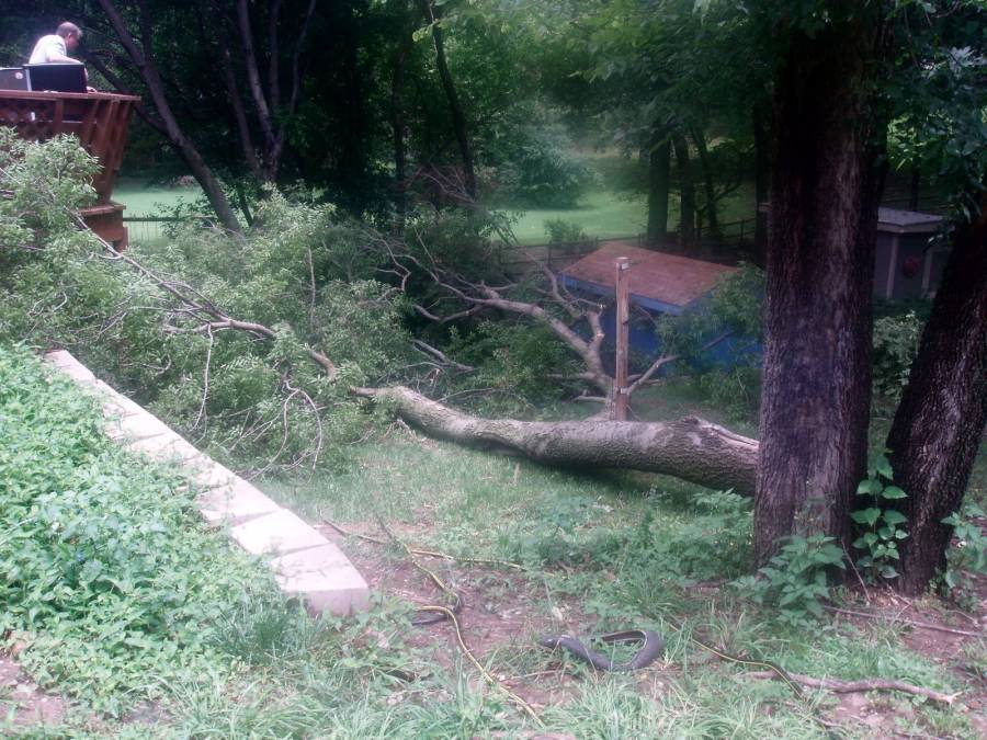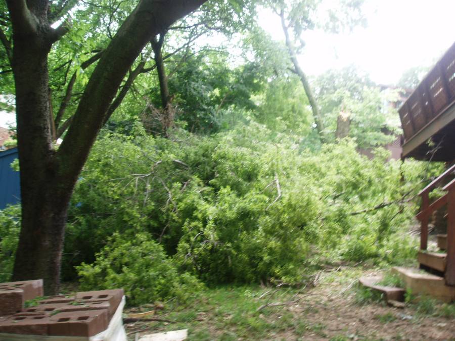 Our second diaster was in the summer of 2007 when a thunder and windstorm knocked down a large hackberry tree in our backyard. |