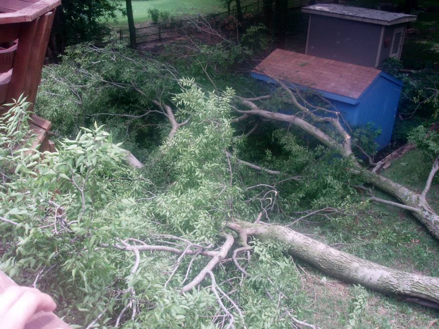 The neighbors behind us really took a hit on their trees. One landed on their deck. |
