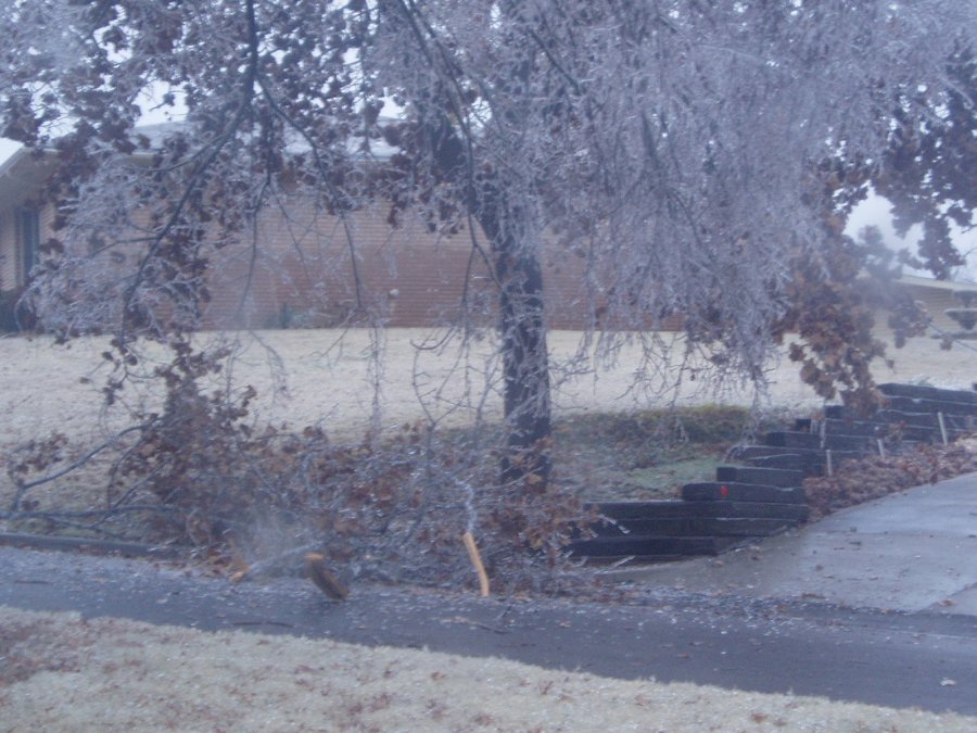We were without electricity for 4 1/2 days. Flashlights were a necessity. The destruction of the trees was widespread all over town, and almost a quarter of a million people in Tulsa were without electricty. Across the state of Oklahoma, it appears to be the largest power outage of all time, and the most expensive storm in Oklahoma history. |