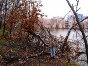 As we sat in our sunroom, every few minutes we would hear a branch cracking (it sounds like a gun shot) and a loud crash as they landed on the ground, or the shed, or whatever. |