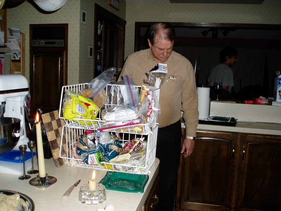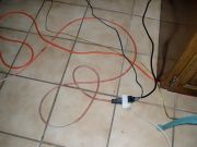 The wiring quickly got messy. We plugged in a lamp, so Judy wouldn't have to cook in the dark. We also had to plug in her CD player so she could cook with jazz! |