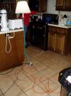 We have a generator that is powerful enough to run our fridge and freezer. We plug in other small things as well. Geof trys to avoid the wires in the semi-dark kitchen. |