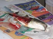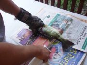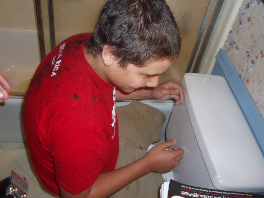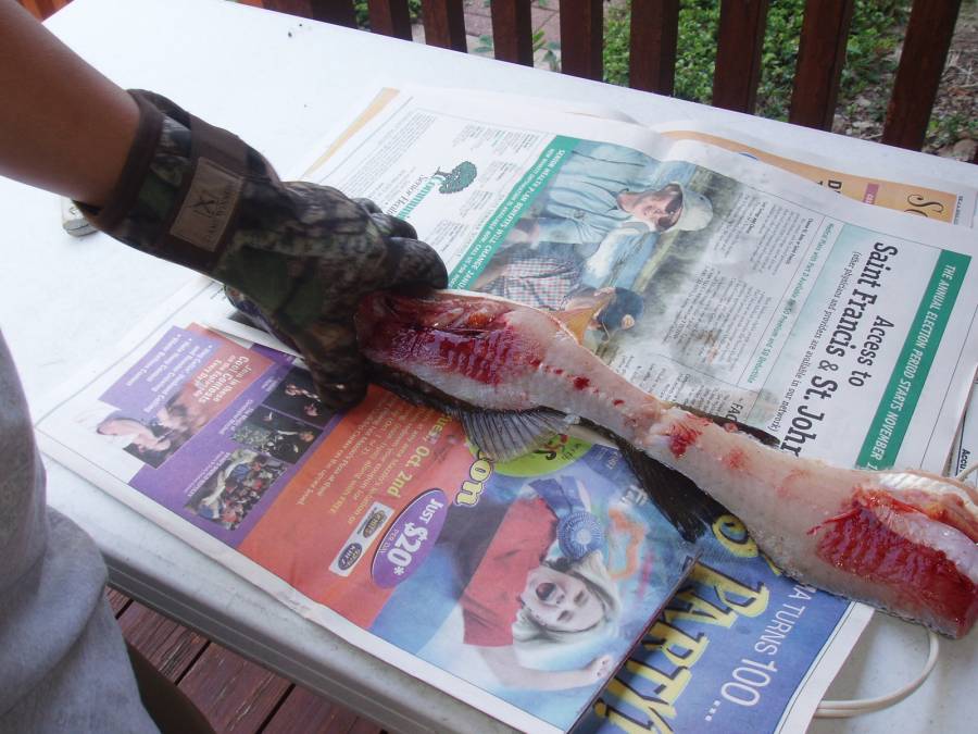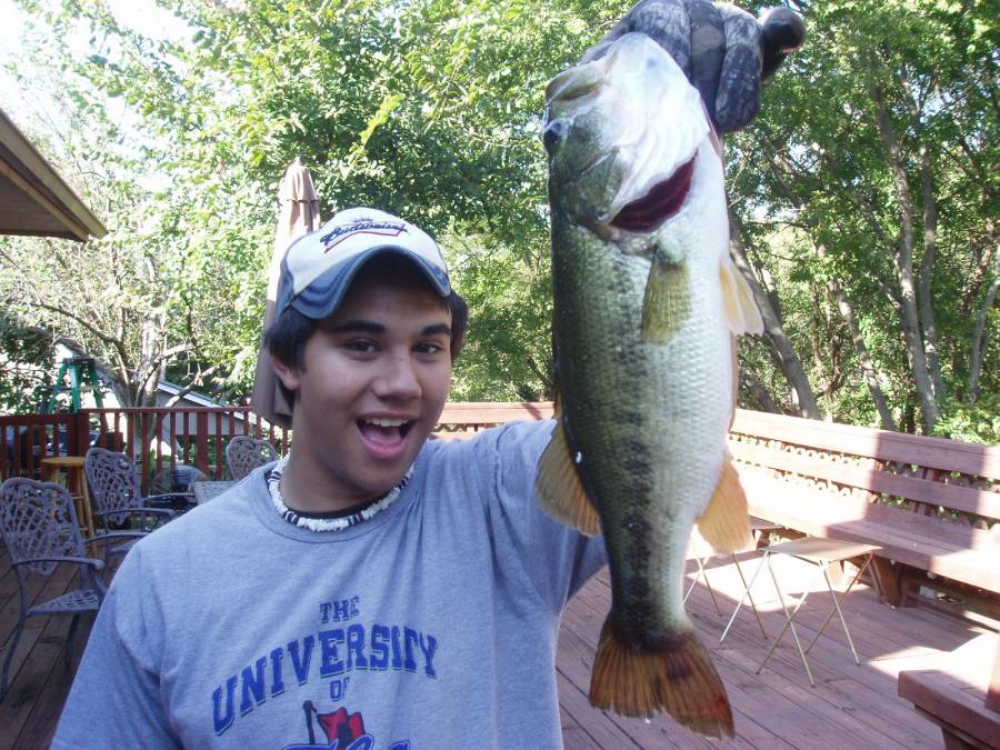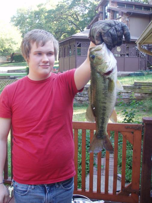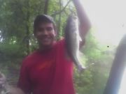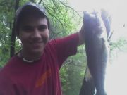 Joey usually doesn't catch much down at the pond by our house, but this was a real keeper. |