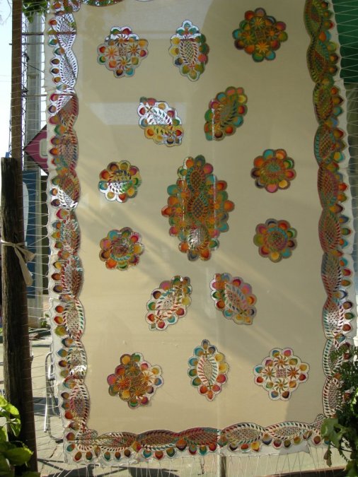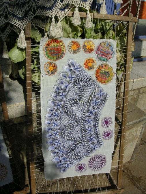 In the region around Asuncion, this is the embroidary that they do. It is described as a "spider web" lace work. The real name is "nandut ィェ". |