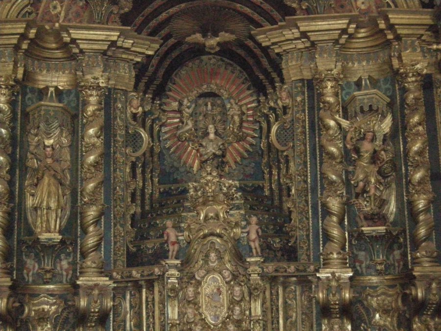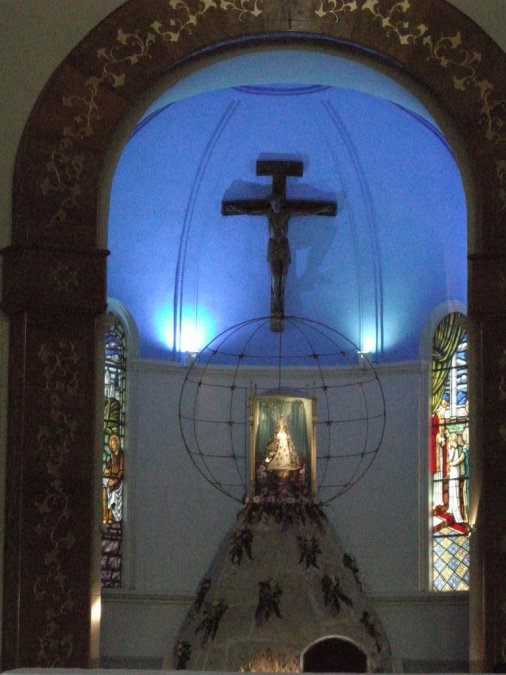 We stopped in a cathedral in some town. The story is that there was a man who was fighting during the war. He was in a desparate situation and prayed to the virgin Mary, asking her for help. If she would help him, he vowed to build a cathedral for her. He was saved, and made good on his promise. I am not sure I understood the guide -- his english was not so good. My Spanglish is also not so good. |
