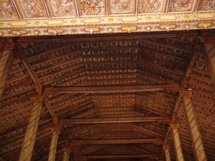 A view of the ceiling and those pillars. |