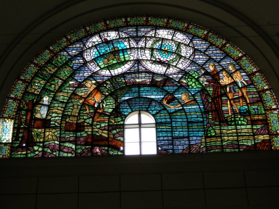 This is the carving at the altar in front of the church. It is ornate and intricate. |