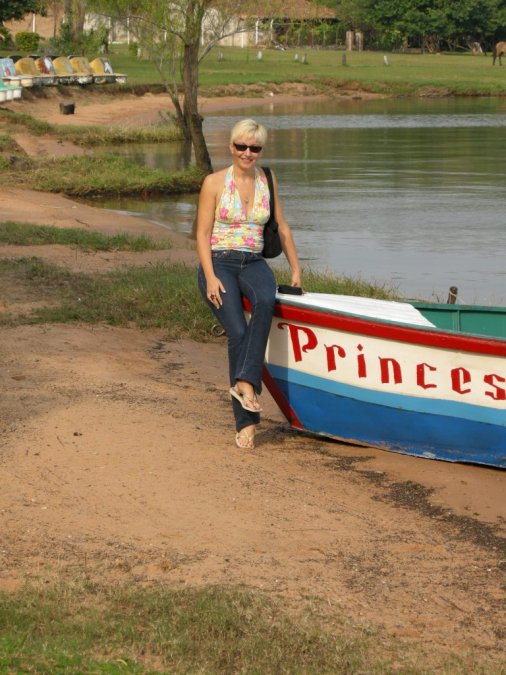 Marival saw the "Princess" boat and we had to take her photo! She is the "princess" of the team. Notice her cute Brazillian sandals? She bought them during her long layover in Sao Paulo. |
