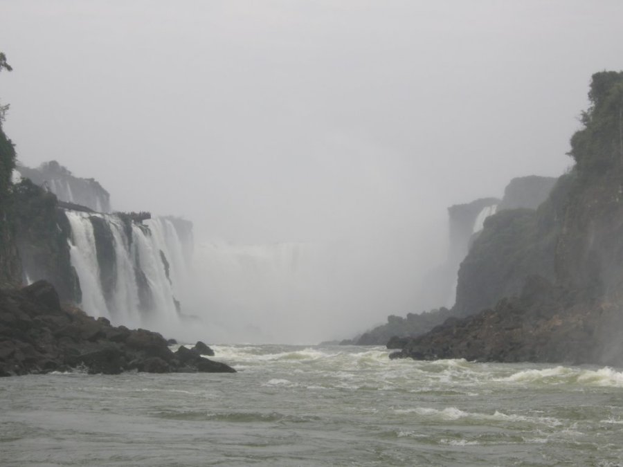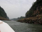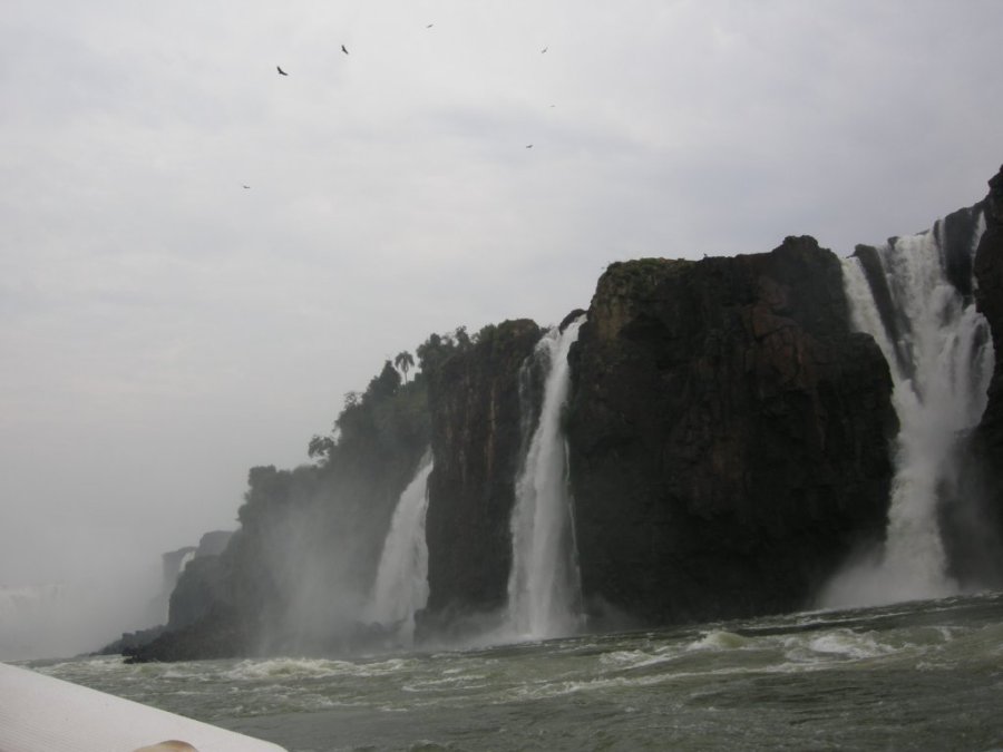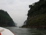 The boat guides would take us very close to the falls so that we would get soaking wet. They'd circle around several times so that we could fill our eyes with the sight. We noticed the vultures circling overhead, wondering if they were looking for their next meal of drowned tourists. |