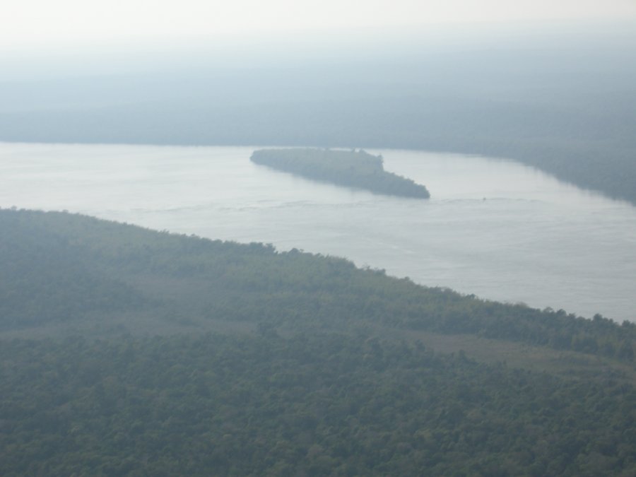All of that wooded area on the bottom of the photo, is the National park on the Brazil side. |
