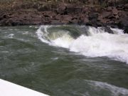 Since we were headed up toward the falls, the water became rougher. The boat had big engines on it to go up the river. |