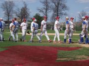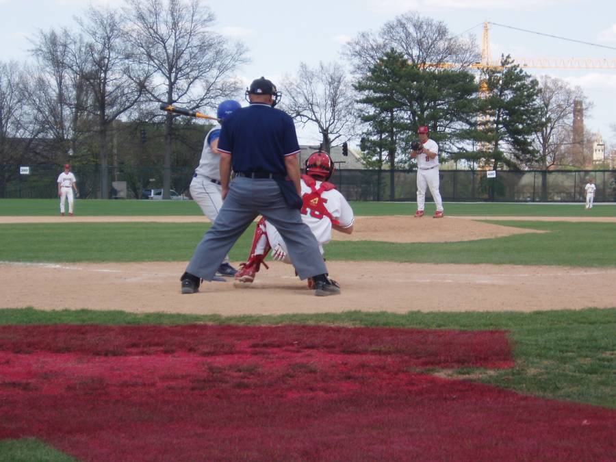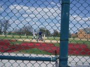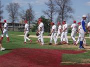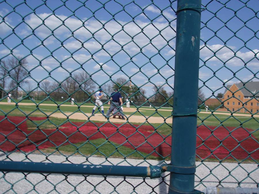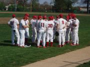 We went over to St. Louis to watch Jerry's baseball team in the spring. Here, the team huddles prior to the game. |