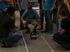 Here is Joey's winning run at the ChemE car competition. If you listen closely, you might hear the announcer making fun of the slow speed of Joey's car. But Joey knew slow was good. If your car is going 10 feet/second and you miss the time by one second, you miss the target 10 feet. If your car is going 1 foot/second, and you miss the time by 1 second, you miss the target 1 foot. |