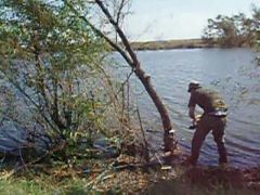 We are removing the old duck blind by pulling on it with the truck, then you will see Joey cutting down a tree to help make room for ducks to get to the pond. |