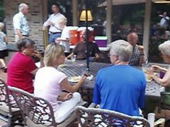 We had a pig roast to celebrate William Cornell's homecoming. Many people had supported him and Lori while he was gone, so we invited everyone from the church to celebrate with us. Our house was filled with people! Geof walked around with the camera to give you a sense of what this gathering was like. Try not to get dizzy when the camera pans quickly. |