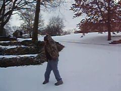 Watch as the boys slide around on the ice in their shoes! No sled or skis needed. Eventually, they figured out that if they wanted to walk on the ice, they had to put on their baseball cleats. |