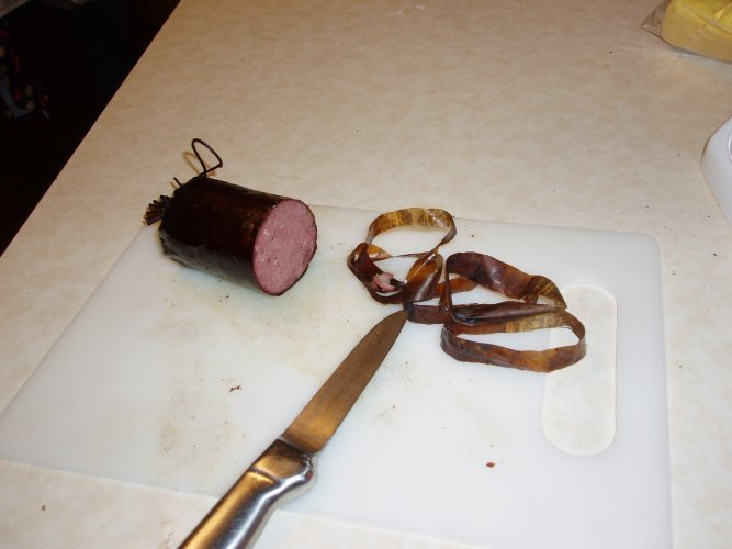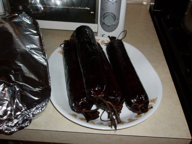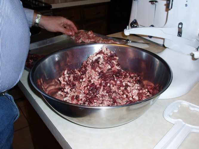 Add spices, extrude into cases, and smoke. Summer sausage! Tasty!
