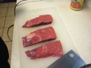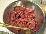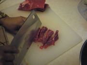 Judy decided to take exrtra pictures of her food preparation techniques and include instructions for the boys so they can duplicate (almost!) their favorite meals Mom prepares. This is the beginning for beef and brocolli. |