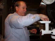 Geof is helping grind duck meat for sausage. We are getting lots of duck (see the "Hunting" section of the CD).