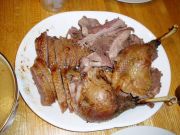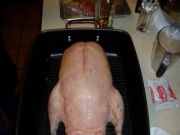 David and Geof shot four geese. Here is one we plucked and Judy stuffed.