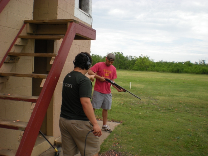 Jerry took his friends out to the skeet range.