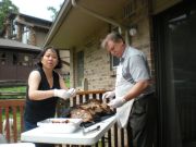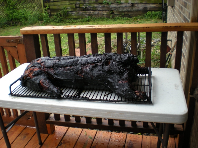 The celebration has to have a pig! It was so big, Geof lopped off the head so that it would fit in the smoker.