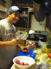 Joey wanted to boil crawfish, so we found some at the local asian grocery store. Joey is cutting up potaotes for the boil.