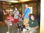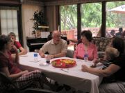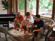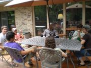 The McVey's and Jerry's college friends enjoy the deck.