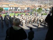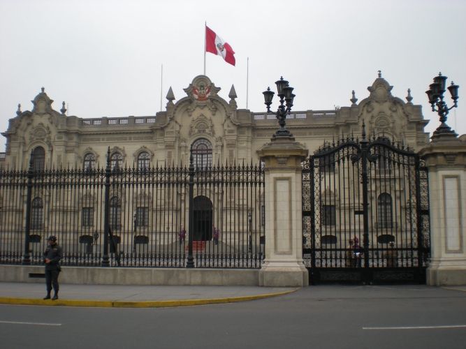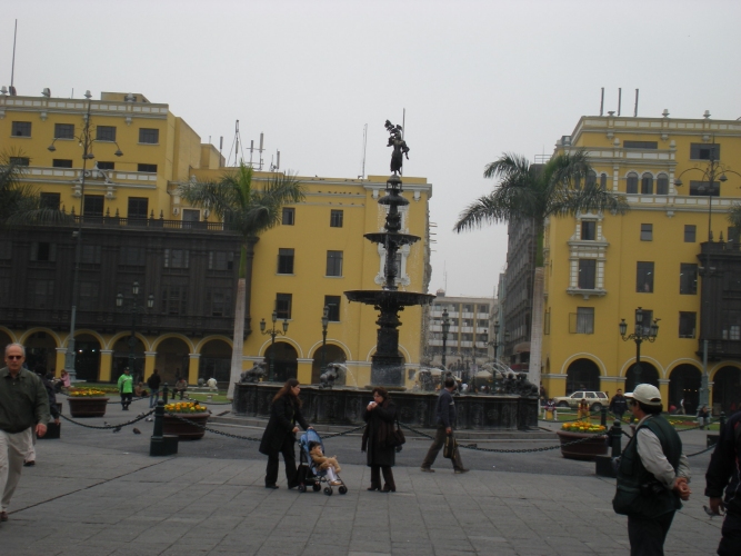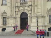 In the Plaza de Armas, the guards were coming out to play music at the President's house.