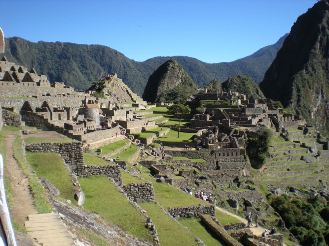 Before we left Cusco, we had a chance to go to Machu Picchu. We took a train for several hours to the town below Machu Picchu, Aguas Calientes. From there, we take a bus up the winding mountain road to the entrance of Machu Picchu.