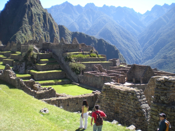 Isn't this amazing? Just like the postcards! This is one of the first views you get when you enter the park. We had an English speaking guide who was part mountain goat, I think. He was never out of breath! Machu Picchu is only at 8000 ft, so it is not hard to breathe at all.