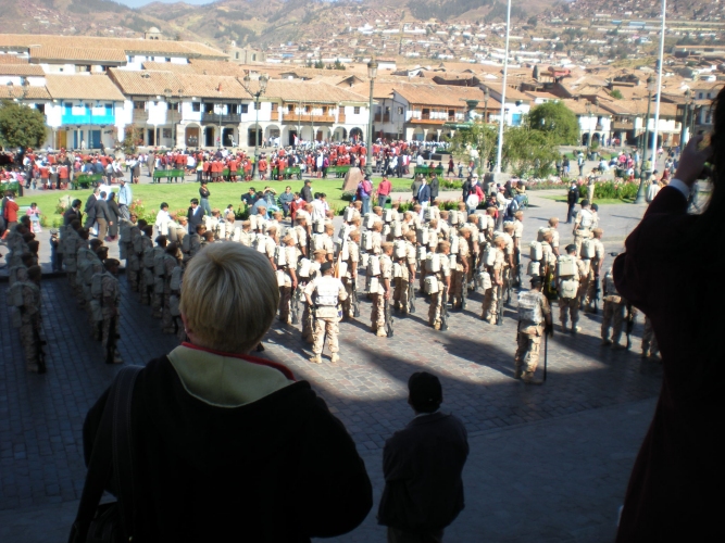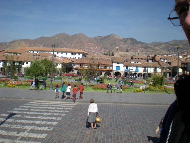 This is back at the plaza in Cusco. We were headed out for the airport to go back to Lima to fly home. The blonde head is Marival.