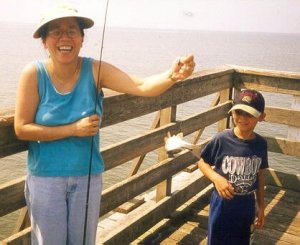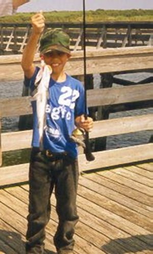 Joey was a big help tying knots and getting fish off the hooks. Here he